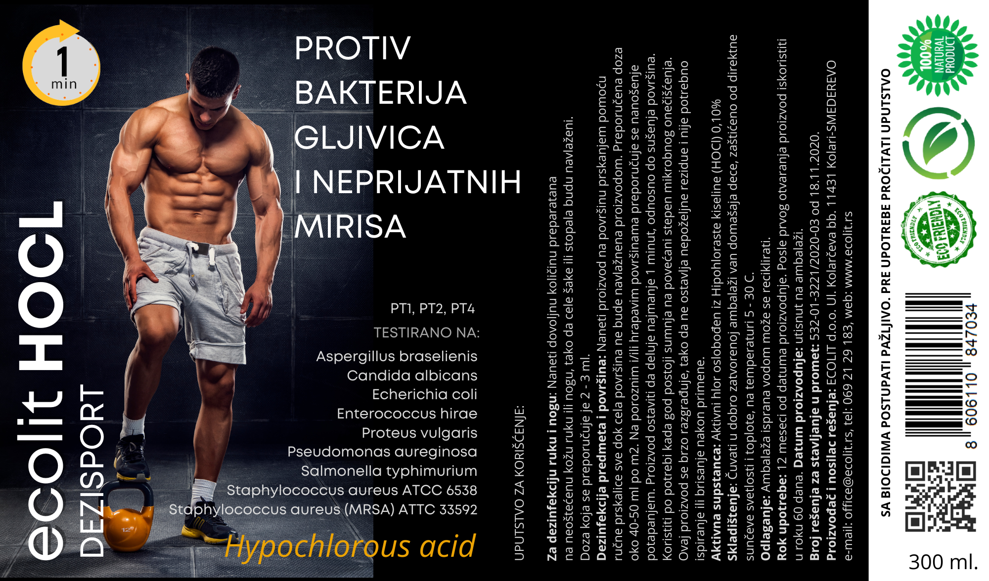 DEZISPORT je biocidno sredstvo na bazi Hipohloraste kiseline. Iako sama reč kiselina deluje odbojno i "opasno", zapravo, radi se o veoma blagom obliku kiseline. Hipohlorastu kiselinu (HOCl) svi imamo u našim telima (karakteristična je za sve sisare), a njena uloga je da služi kao prva linija odbrane od patogenih mikroorganizama, kada se recimo ogrebemo ili posečemo. Obzirom na svoju blagost, pH neutralnu vrednost i koncentraciju koja je namenski dizajnirana, DEZISPORT neće imati negativnih posledica po materijale poput tekstila, drveta, plastike, gume, neoprena, likre, inoksa... i naravno, kože.